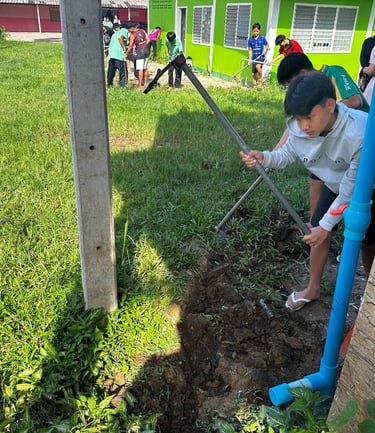 Este ano, realizamos importantes melhorias na infraestrutura. Perfuramos um poço artesiano, substituímos toda a tubulação, instalamos um novo sistema de filtragem e fornecemos água potável gelada no refeitório, garantindo melhor qualidade, segurança e conforto para todos.