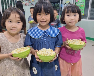 A Noite do Cinema acontece todas as sextas-feiras e é um momento alegre de descanso, diversão e conexão. As crianças desfrutam de pipoca, filmes e um ambiente acolhedor e familiar.